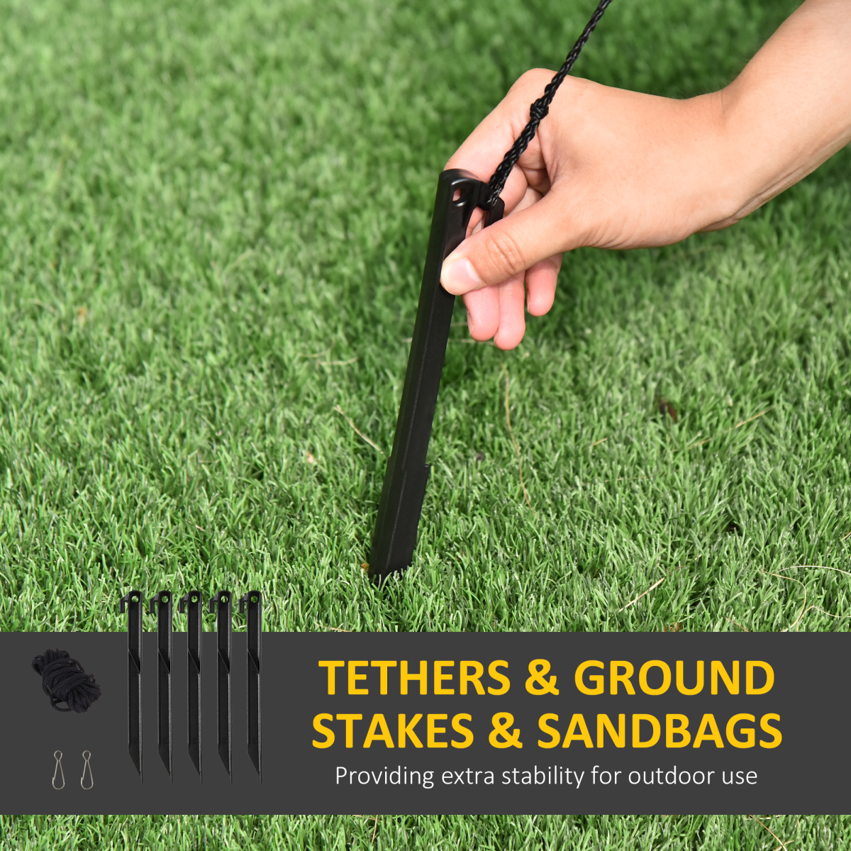 Accessories: 5 x ground stakes, 2 x guy ropes and 2 x sandbags