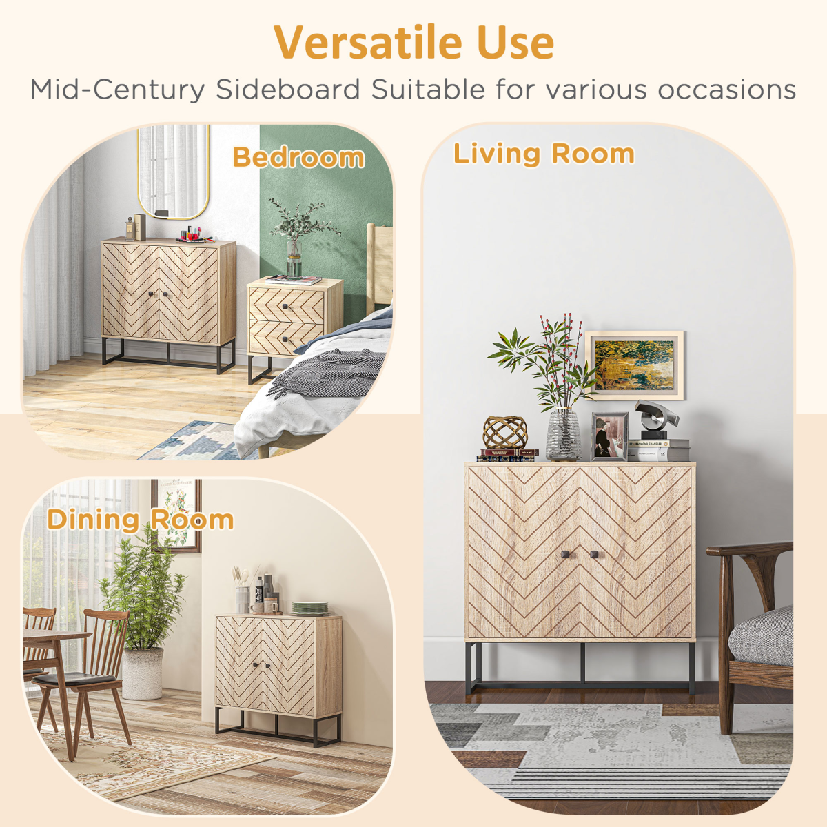 Embossed Arrow Storage Cabinet w/ Adjustable Shelf Metal Frame Handles Stylish